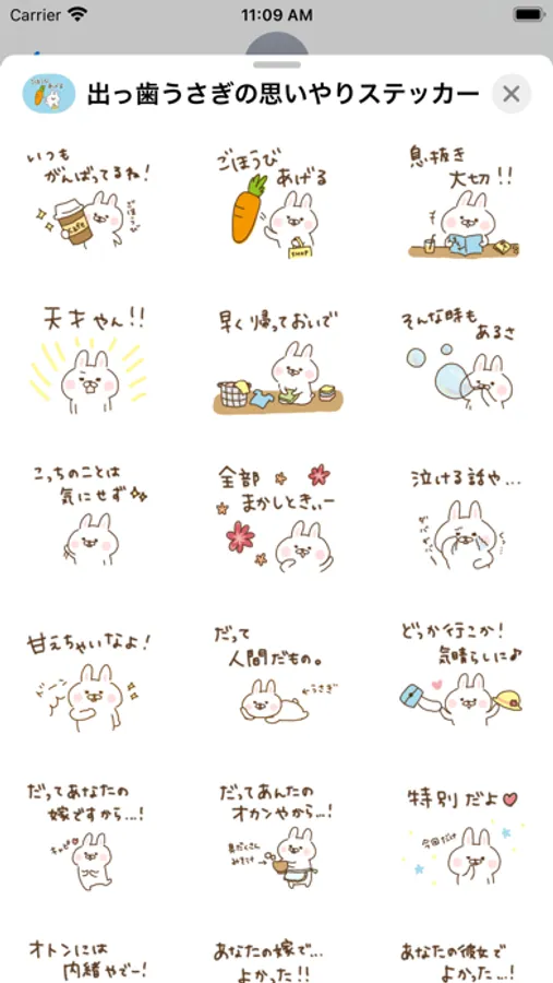 出っ歯うさぎの優しさ伝わる思いやりステッカーです。