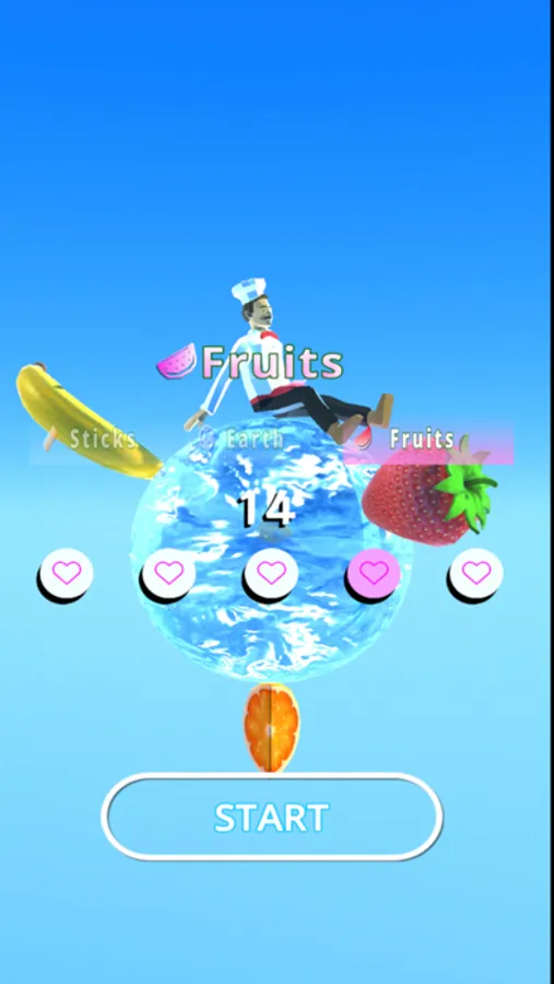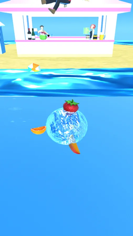 Fruits Stage: Hit the fruits into the ice ball before reaching the bar.