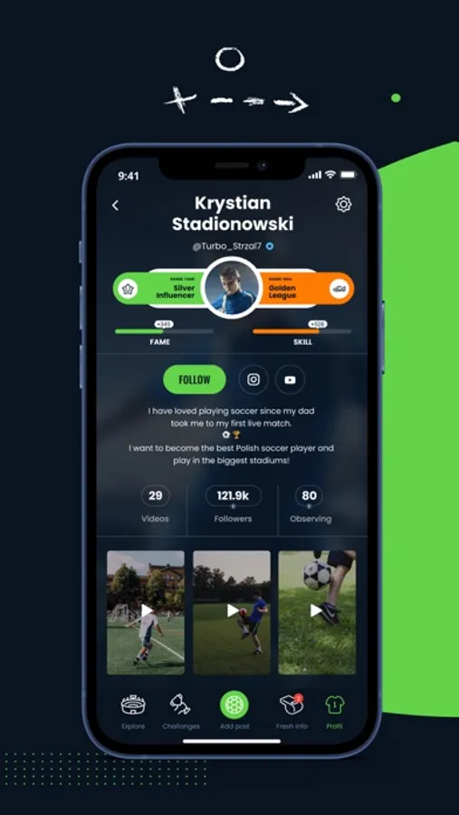 4GOAL.app is a social media app for the sports community of young football players, their parents and experts, allowing them all to post short vertical videos demonstrating their skills.