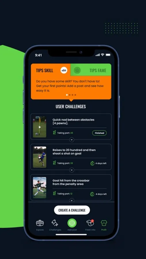 Get creative and show us what you can do - from showing your skills on a pitch and demonstrating your best moves to creating challenges and inviting other users to join.