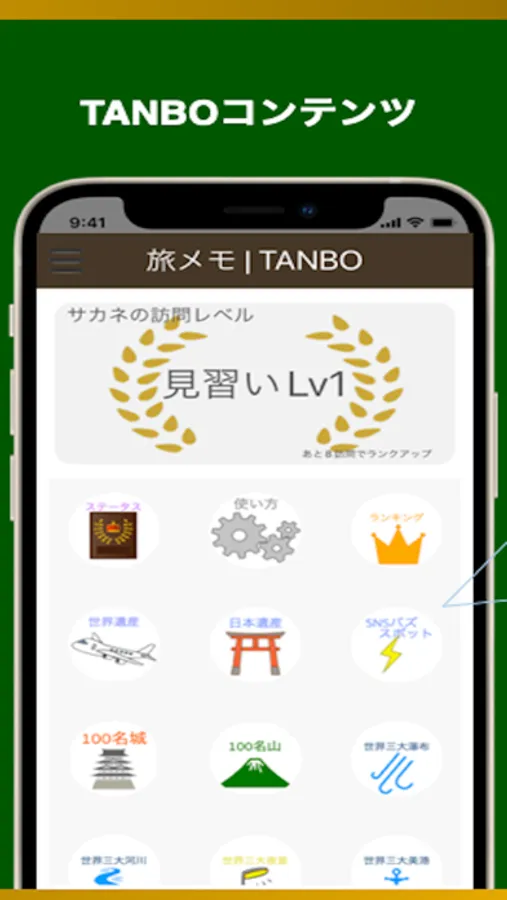 訪問した世界遺産・日本遺産・世界三大スポットなどを旅メモ|TANBOで記録し旅レベルを上げましょう。