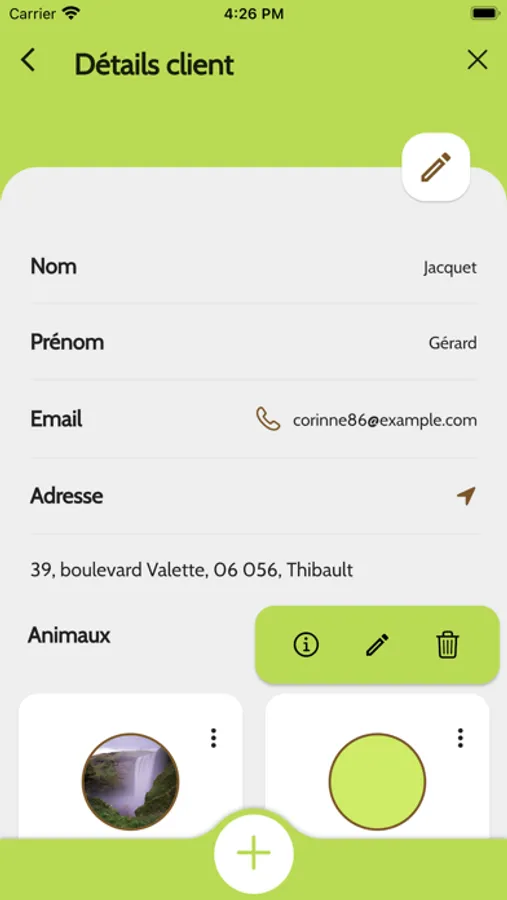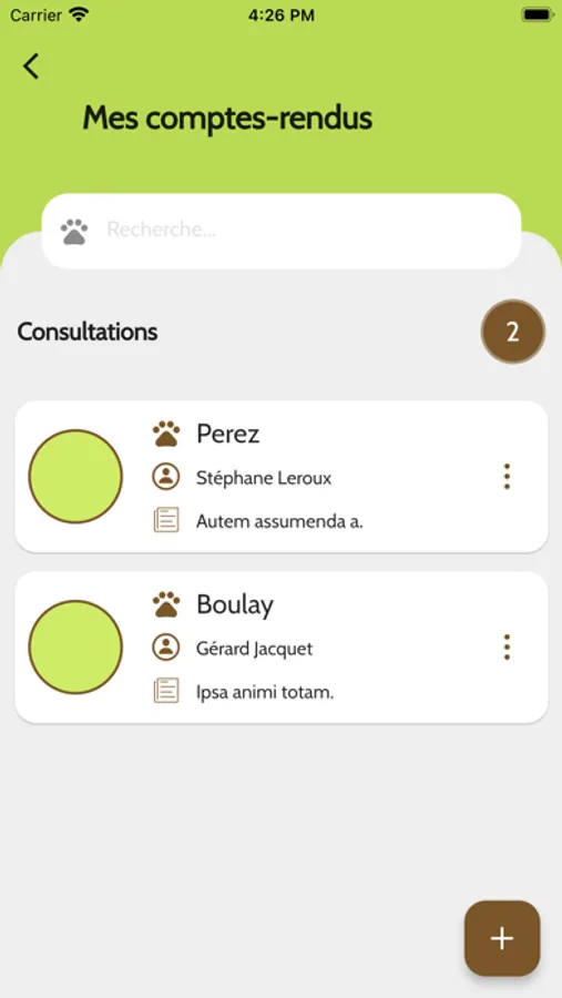 En quelques clics, vous créez la fiche de votre patient et de son propriétaire. Vous avez la possibilité de rester bref (nom, adresse, date de naissance, ...) ou de renseigner davantage de critères (races, antécédents vétérinaires, ...) et d’ajouter une photo de l’animal. Vous avez dorénavant accès à un fichier clients coordonné qui met à portée de main la description et tout l’historique de l’animal. Votre suivi client est géré enterrement depuis votre smartphone et/ou votre tablette.