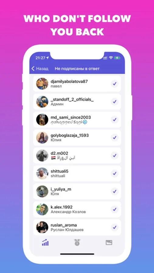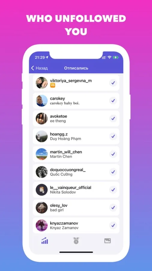 Want to know who unfollowed you on Instagram? Want to know which of your photos are the most popular? Then this app is for you! Our app allows you to analyze information about your profile, followers, following and more.