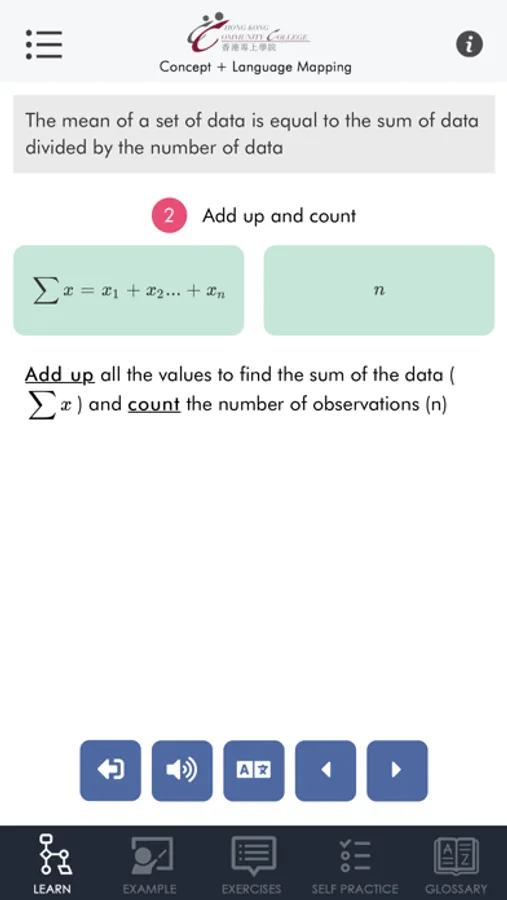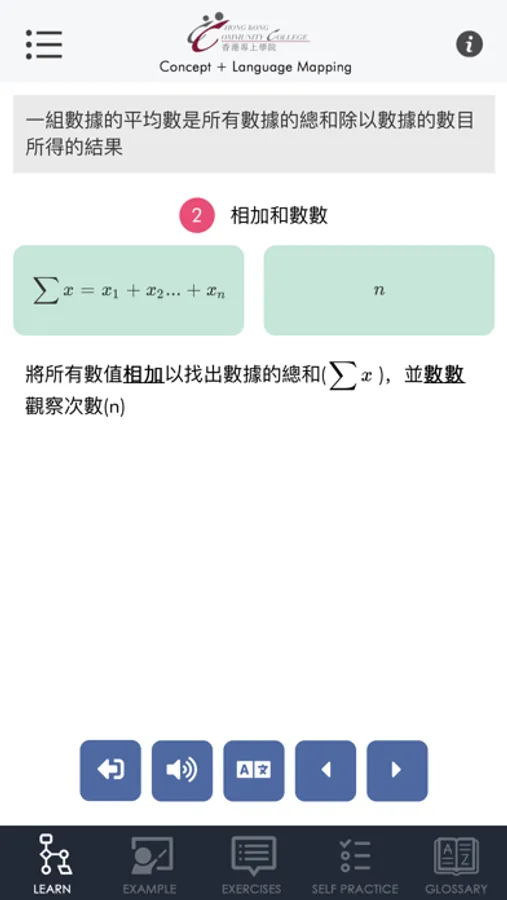 Math CLM is an animated bilingual “Concept + Language Mapping” (CLM) (Lin, 2018; He & Lin, 2019) digital application supports students’ cross-linguistic and cross-modal transfer of prior math learning in a Content and Language Integrated Learning (CLIL) context which is funded by the Quality Enhancement Support Scheme (QESS) of the Self-financing Post-secondary Education Fund (SPEF). It provides a platform for students to review the mathematical concepts learnt in HKDSE through a CLIL approach, and under this approach language and mathematical concepts can be learnt together.
