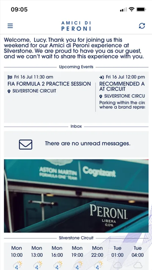 The app provides guests with all the information they will need during the event. This includes, but not limited to, tram & race information, local points of interest, map-based directions, bespoke personalised itineraries, as well as providing a way of Peroni to instantly contact participants.