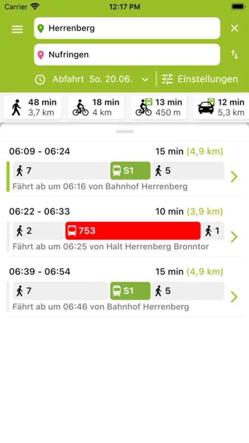 Kombinierte Verkehrsmittel: stadtnavi findet die Beste Kombination aus Verkehrsmitteln. Stellen Sie z.B. Ihr Auto auf dem Park and Ride Parkplatz ab, steigen Sie in die S-Bahn und legen Sie den letzten Kilometer mit dem Sharing-Bike zurück.