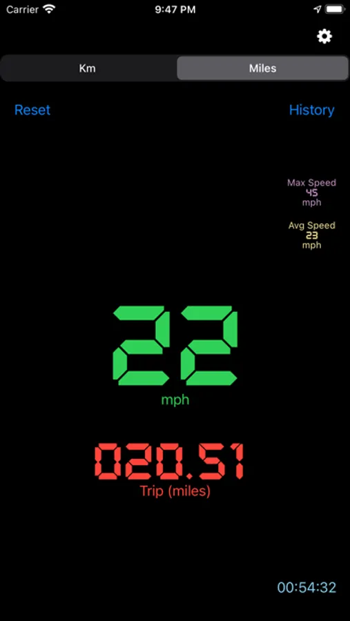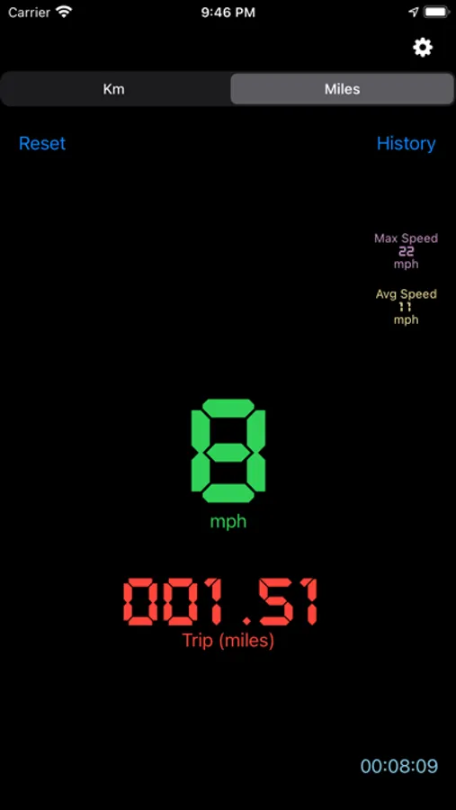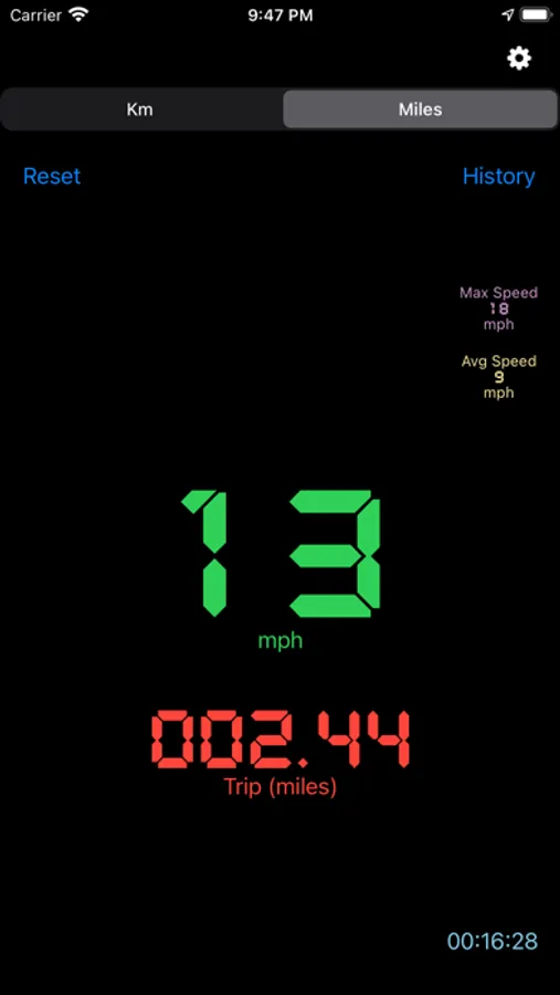 ** Keeps counting miles and journey time on background while listening to music or using other apps **