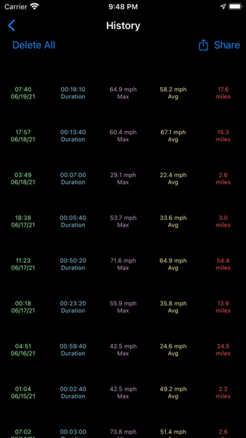** Easily review trips history with friends later and share history as a spreadsheet file **