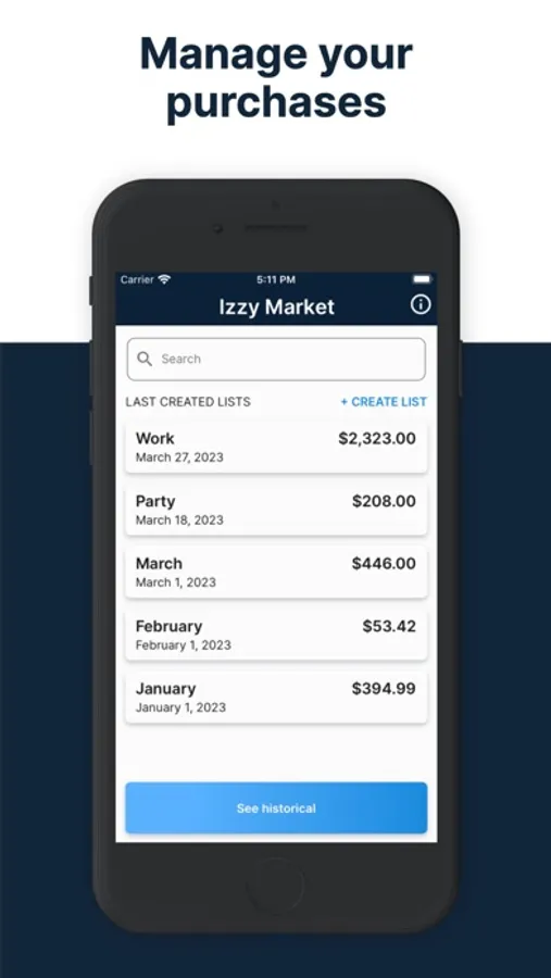 Izzy Market will help you make your shopping list and at the same time it will generate a monthly spending history.