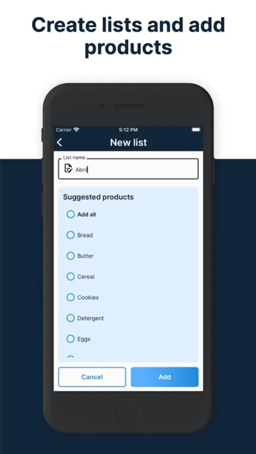 First you must create a list by assigning a name; if you already have previously created lists you can add products from those lists with a touch.