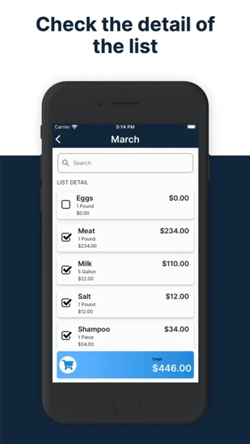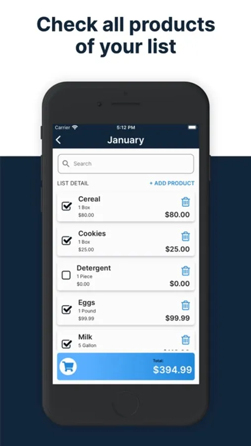 When you add the price of the product on the left side a check will appear that means that you have already taken the product, this will allow you to more easily identify which products you are missing from your list at the moment you are buying.