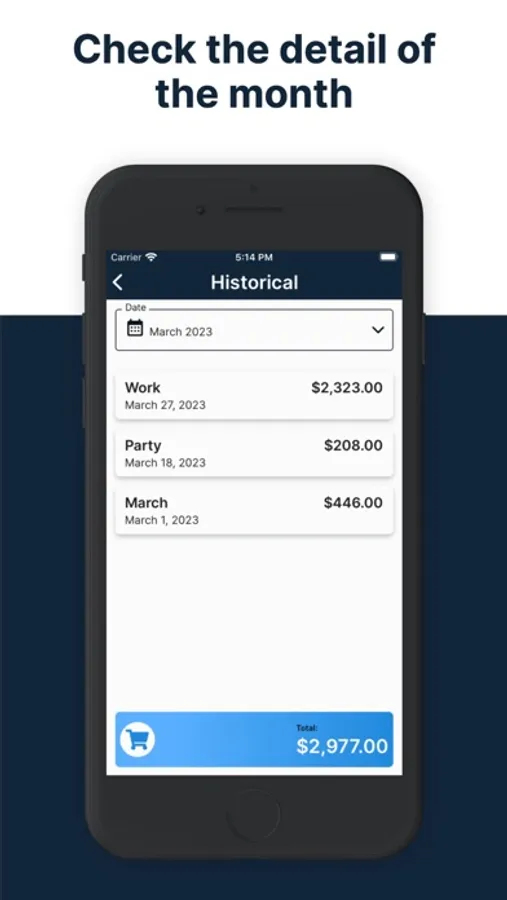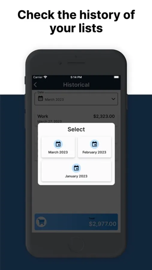 When a list does not appear on the main screen, it will be stored in the history. In this option you will be able to consult all the lists created grouped by month, consulting the total spent for each month, as well as the total for each list.