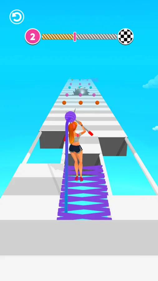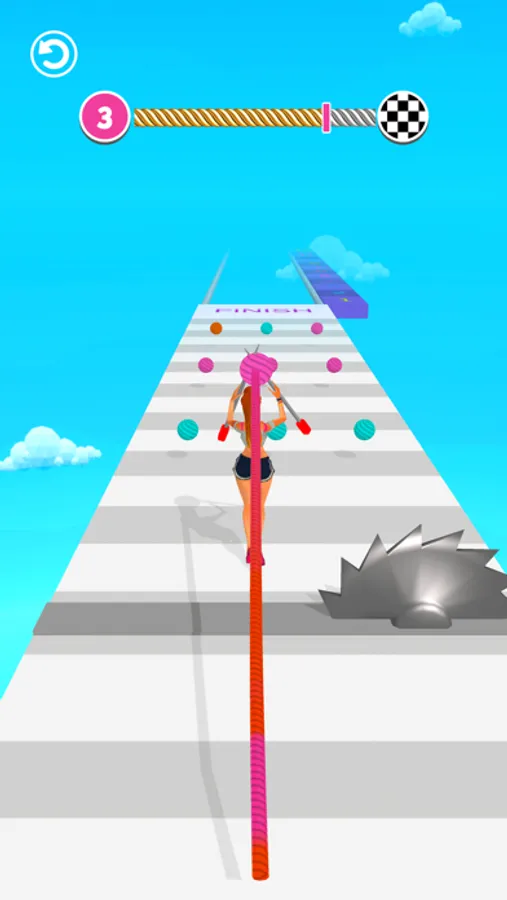 Collect the pieces of rope on the ground and add them to the ball of yarn. Sew the gaps on the platform using the least amount of rope.