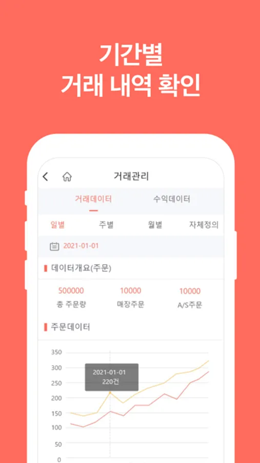 - 매출관리 : 오프라인 및 온라인 매출내역, 환불내역 대해 주문건수 및 매출정보를 확인할 수 있는 기능