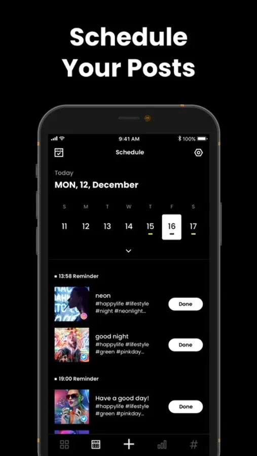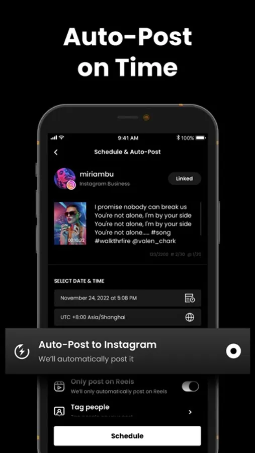 Select a time and time zone, PrePlan will automatically post it as scheduled on Instagram and Twitter (if you have authorized the auto-post for Twitter). Only auto-post on reels is available! All scheduled posts will be listed by date for you to manage.