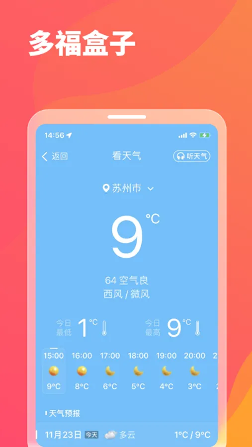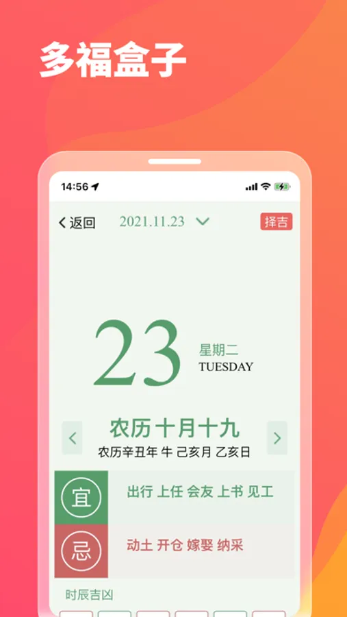 多福盒子,看天气、查日历、择吉日、发祝福,简单易用不求人。满足你的休闲娱乐的需求,丰富精神文化世界。