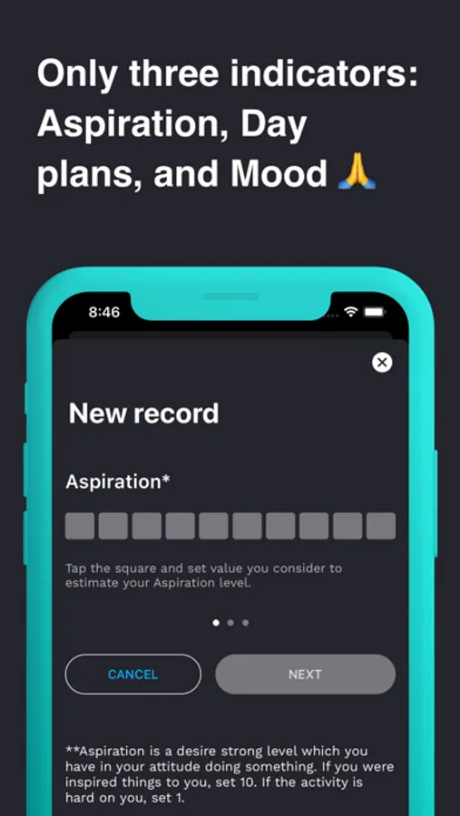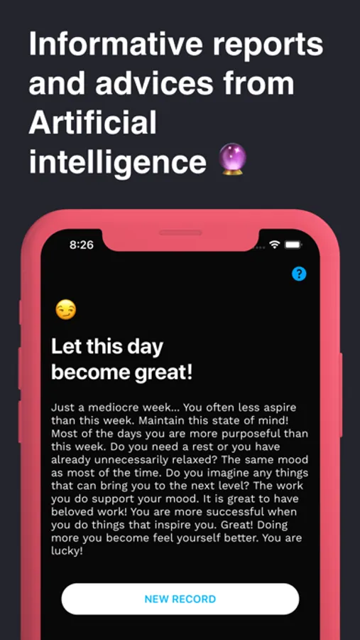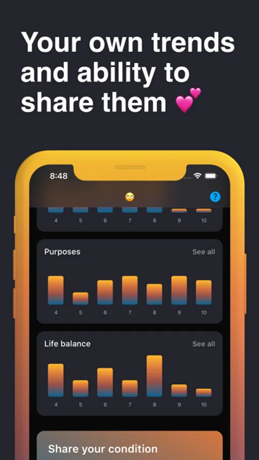 Emozis is a unique app that fixes only three of your mental indicators like Aspiration, Day plans progress, and Mood, and gives you advice about how to make your life better, and also performs you an Infographics of your life indicators (is available in the third menu point).