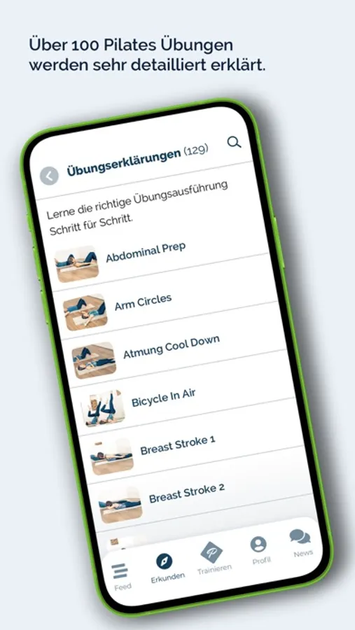 Alle Pilates Übungen werden sehr detailliert in Videoform erklärt.