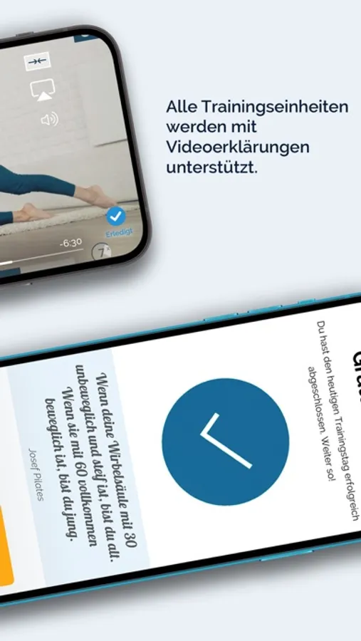 Je nach Trainingstag erwarten dich Pilates Übungserklärungen, Workouts, Profi Tipps, Challenges, Kurzerklärungen, Video Selbstkontrolle,…