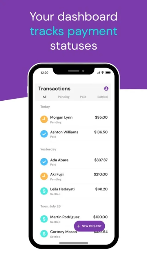Track your payment statuses on the dashboard, follow up with customers, and know when your money will be deposited. You’re only charged after your customer pays at the low fee.