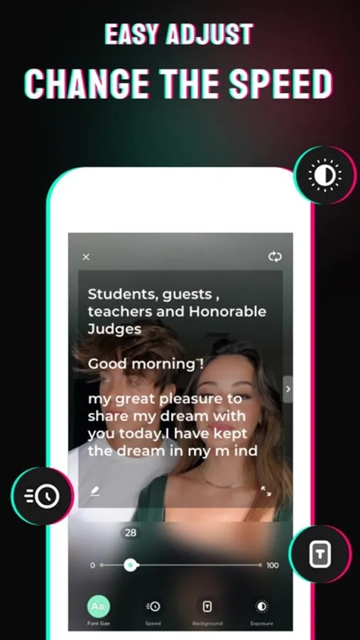 This app is perfect for Vlogging, making live-streams, practicing speeches and ecording presentations. Musicians and singers can use it for reading lyrics. You can also use it for speed reading.