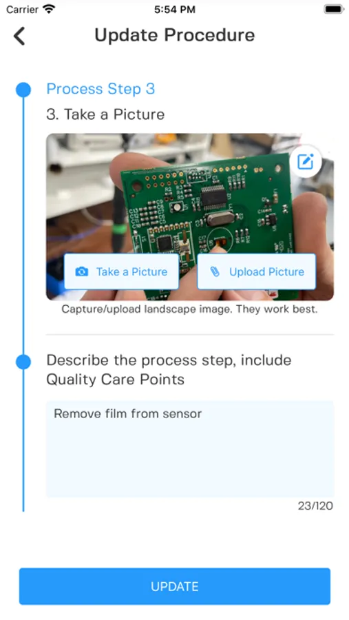 Just hit the CREATE DOCUMENT button to get started. Give your Standard a Title – then for each step, snap a picture, annotate it if you like & describe the process step with some text– then repeat that for as many steps as you need til you’re DONE!