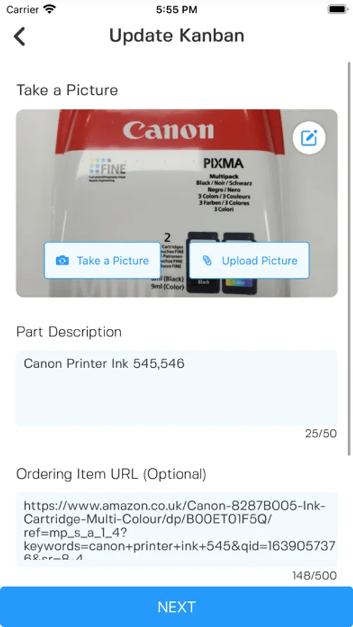 To create a Kanban card, add a photo, which can then be edited through an integrated editing feature. Users can also draw pictures to highlight a specific area. It takes just a few minutes to generate a professional Kanban card, with a QR code for scanning when re-ordering.