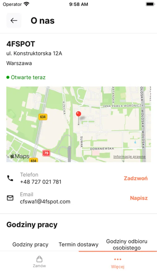 Oprócz zamawiania online aplikacja pozwala sprawdzić: