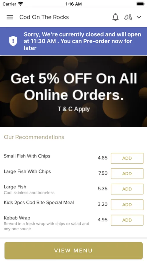 Here At Cod On The Rocks We Are Constantly Striving To Improve Our Service And Quality In Order To Give Our Customers The Very Best Experience. As A Result, We Are Finally Proud To Unveil And Introduce Our Latest Improvement,Our New Online Ordering app! You Can Now Relax At Home And Order Your Favourite, Freshly Prepared Meals From Cod On The Rocks, Online. You Can Even Pay Online!