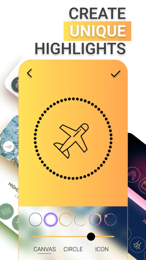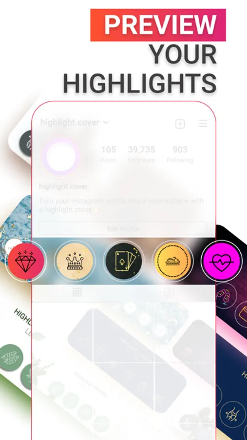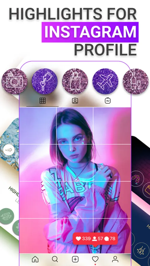 With Highlights Maker, you can easily create your own unique cover icons or choose some from design templates already presented in the app for ig story. Create a masterpiece in your insta profile in a few taps and Impress your followers.