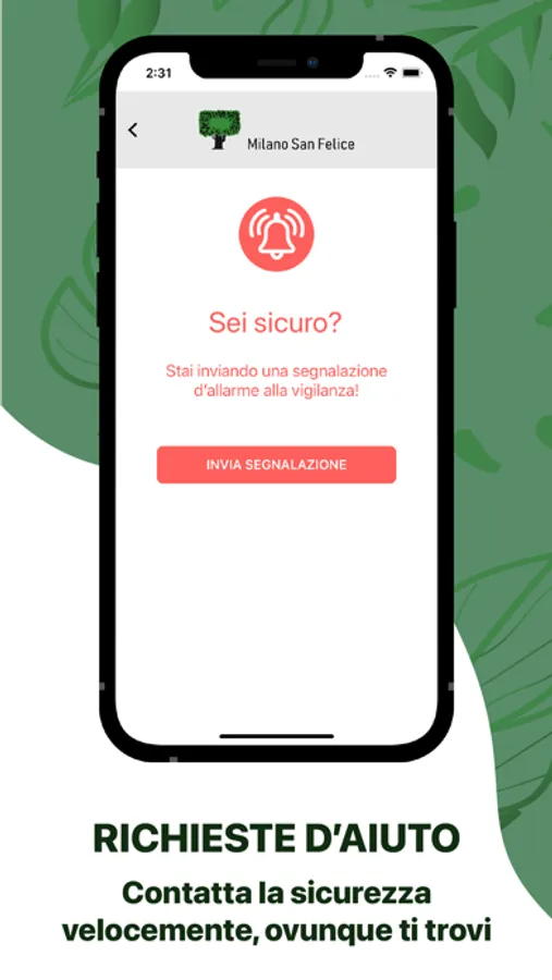 È possibile, previa registrazione, effettuare una Segnalazione di Emergenza per richiesta di aiuto in caso di situazioni di pericolo. Tale Segnalazione viene inviata attraverso WA al servizio di Sicurezza presente h24 a presidio del territorio.