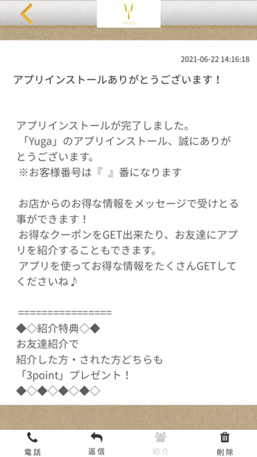 YugaのアプリをSNSを通じてお友達に紹介する事ができます。