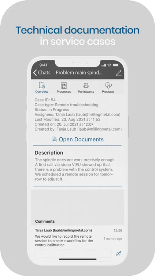 In addition, there are helpful functions, such as overlays of information or recordings for the fulfillment of verification obligations. The visual representation of information and addition of images and videos to the visual image of the data glasses or smartphone/tablet is referred to as augmented reality. The steep ViEU – virtual realtime support platform can be implemented as a hosted service or on-premise and also provides a ticket system for processing and documenting service requests