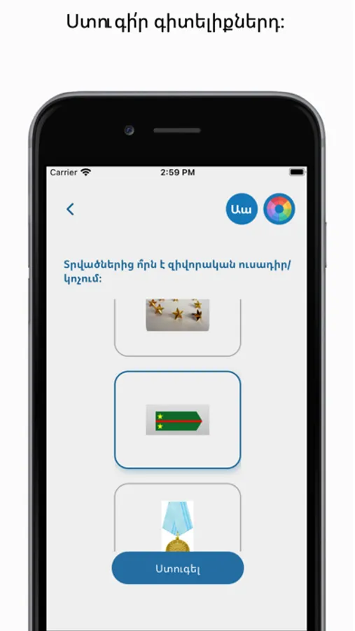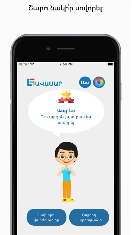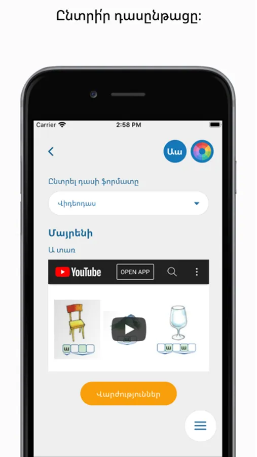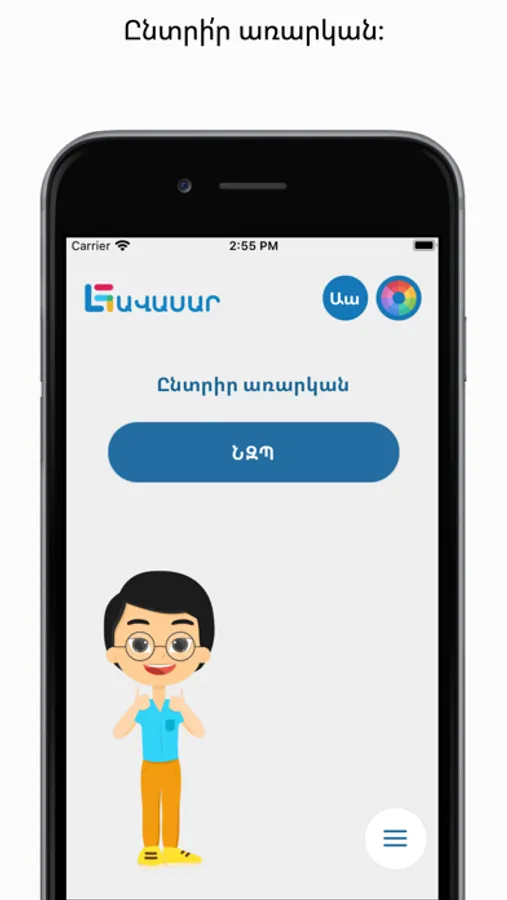 "Havasar" is educational app, that is accessible for children with visual, hearing and intellectual disabilities and is intended for children aged 6-18. It gives opportunity to register, to set up profile photo, to choose text size and background colors. There are 3 supporting characters, that help children to use the app. In the app one can find accessible forms of school lessons: video lessons with sign-language translation, video lessons with graphic solutions and audio lessons. After completing lessons children can do exercises.