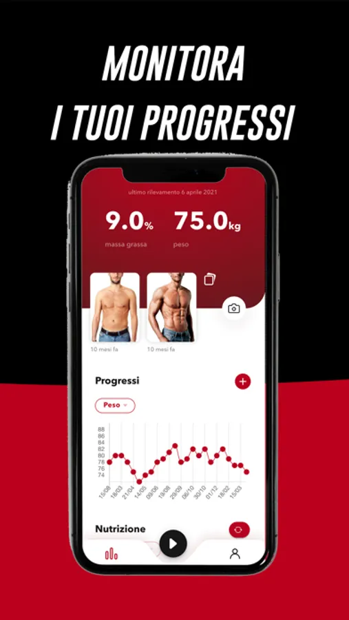 Avrai sempre sotto controllo la tua attività fisica: potrai visualizzare quali esercizi sono previsti nel tuo piano di allenamento, i tuoi progressi e come cambia il tuo fisico nel corso del tempo.