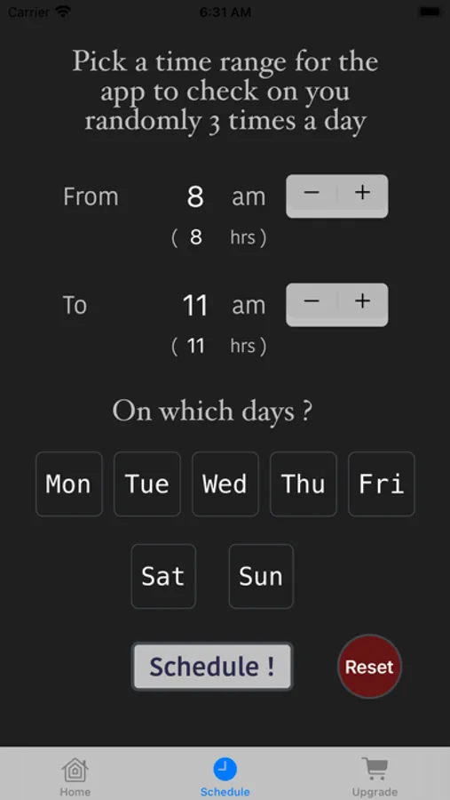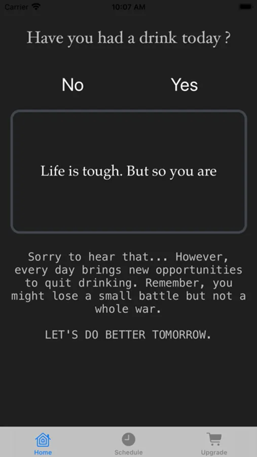 There are several quit drinking alcohol strategies. Some work for some people, while some don't. This app employs a "checking on you" strategy where our app checks on you randomly (random hour and random minute during the time frame you choose) to make sure you do not relapse.