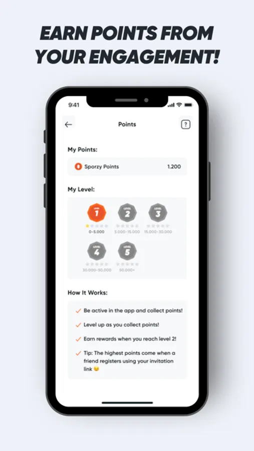 Collect points as your engagement within the app increases