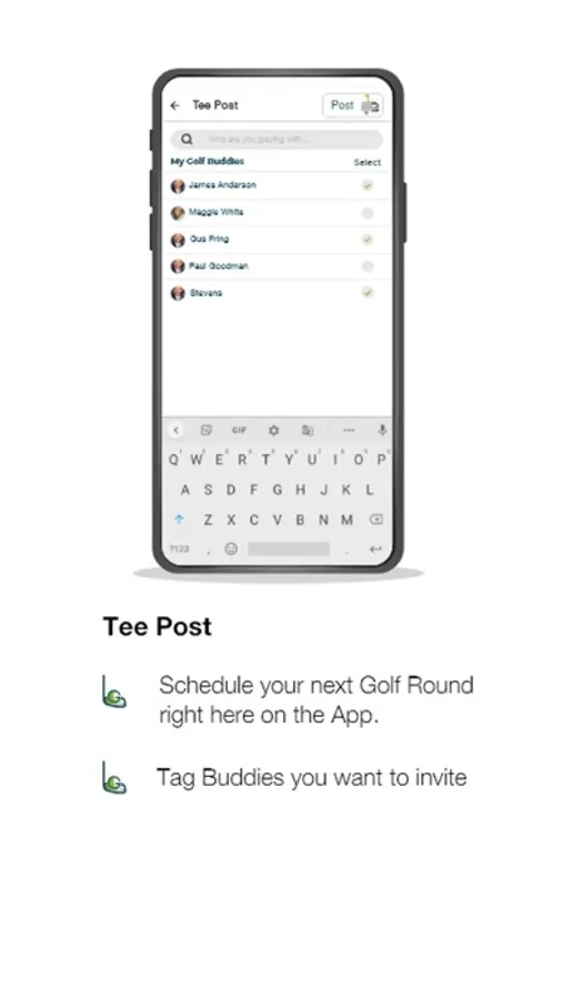 Tee Post - schedule a Golf game, Tag friends you want to invite