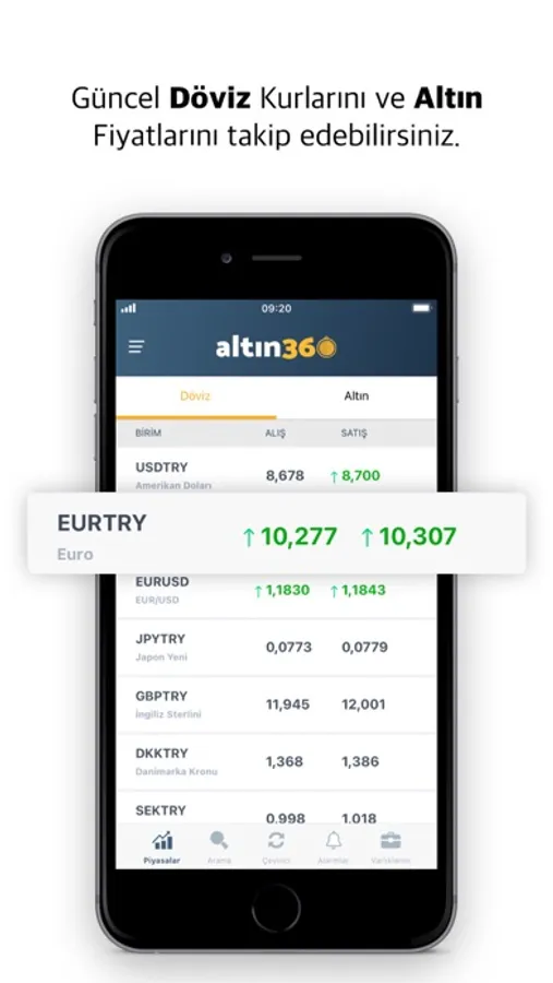 -Tüm döviz ve altın kurları için kullanabilen çevirici sayesinde birçok döviz kurunu birbirleriyle karşılaştırabilir ve farklı türlerde altın fiyatlarını hesaplayarak doğru fiyat bilgilerine anında erişebilirsiniz.