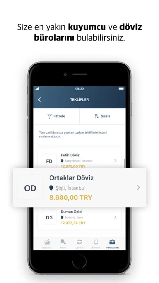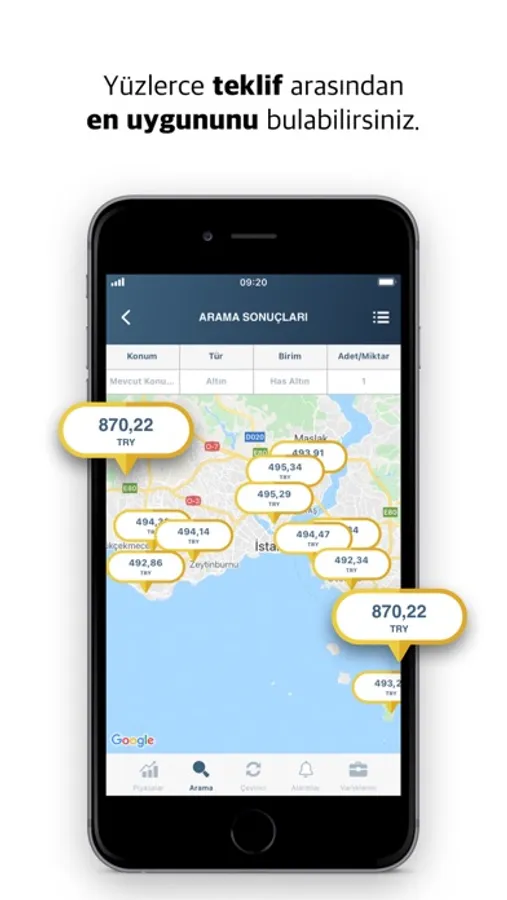-Almak veya satmak istediğiniz varlıklarınız için sunulan ideal fiyat tekliflerini kolayca arayabilirsiniz.