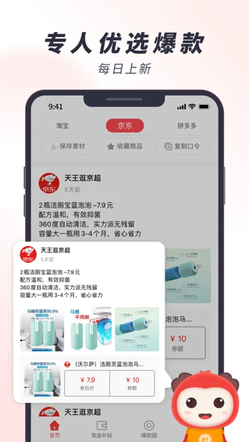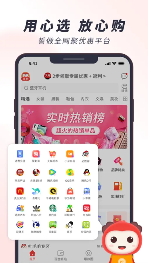 2、淘宝、天猫、拼多多、京东领大额优惠券,买得多省得多返利更多,设有专属特卖场,同步大牌抢购精选活动,消费省钱