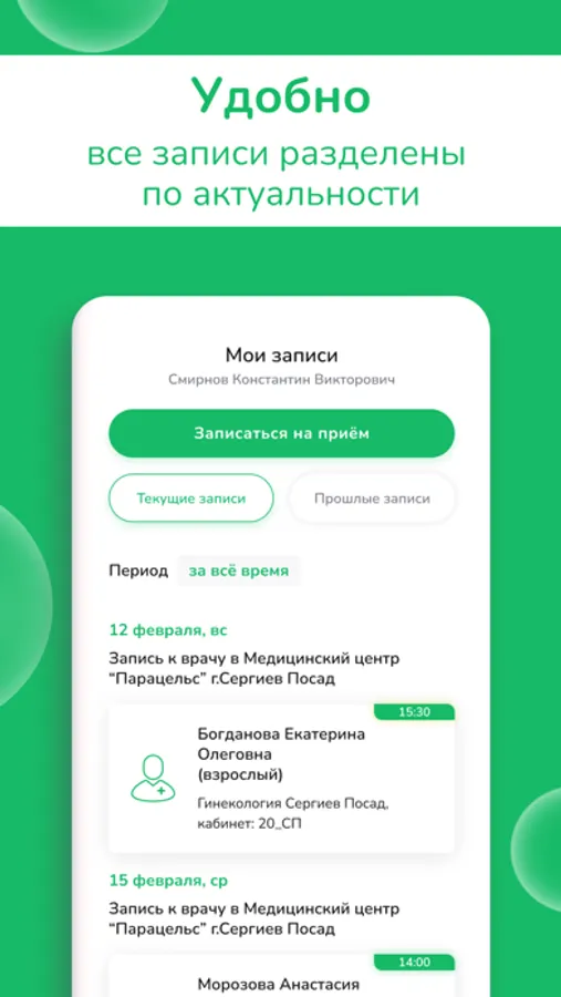 - Получить доступ к своей медицинской карте, видеть историю ваших обращений.