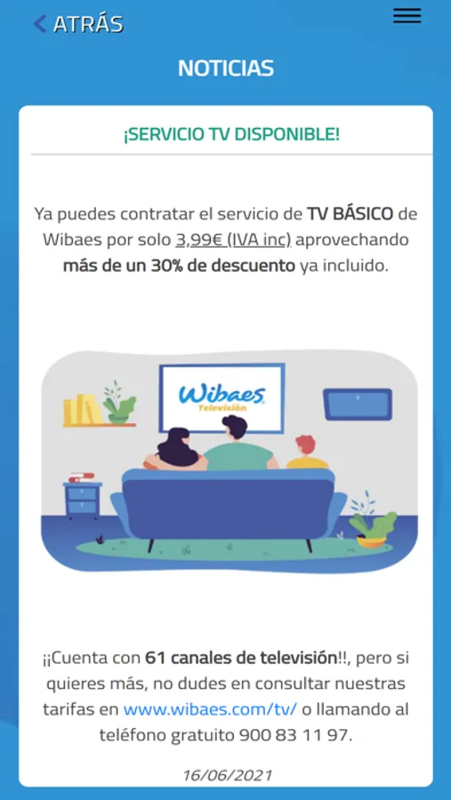 Desde nuestra App podrá realizar multitud de gestiones con Wibaes desde la comodidad de su hogar, como ver sus contratos activos, visualizar su consumo, descargar facturas, abrir tickets de soporte y muchas más opciones.