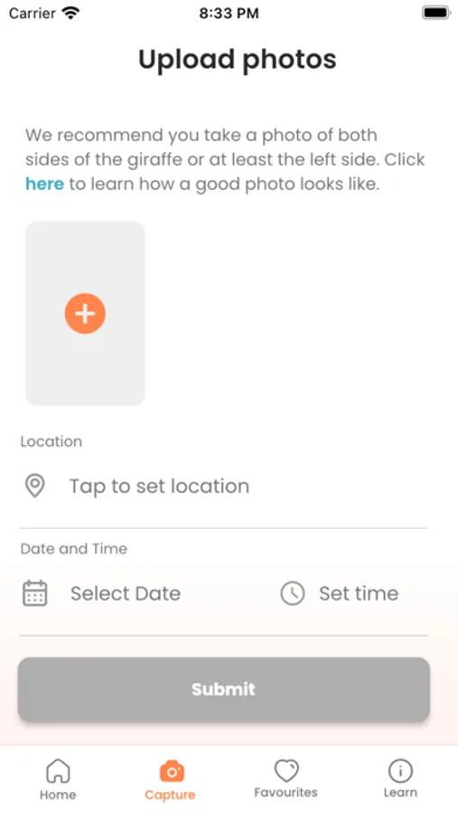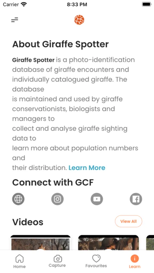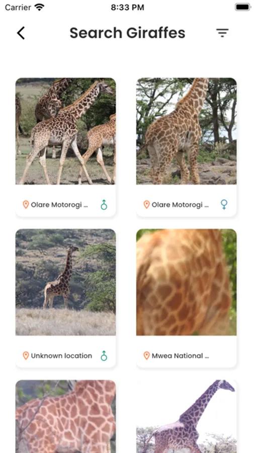 Using the app, tourists and tour operators, among others, can upload pictures of giraffes. Our algorithm then matches the picture with a database of giraffe images, using the fur pattern. Together with data extracted from the picture, such as location and date, this provides the GCF with rich data.
