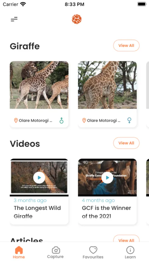 The app also allows users to browse the giraffe directory, view information and make donations.