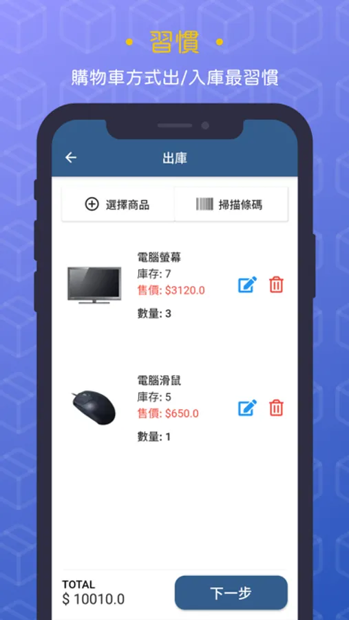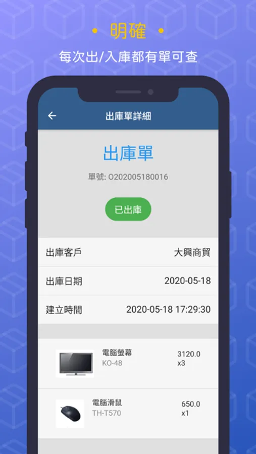 3. 商品出庫: 出庫指定商品給指定的客戶(可使用條碼掃描出庫,效率更高!)