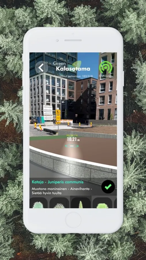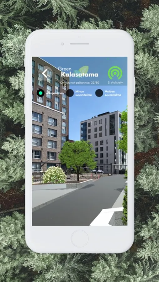 Green Kalasatama is an Augmented Reality application for residence in Kalasatama area. Users can preview Loviseholmin park, which is still under construction, they can also make their own design by planting trees and other objects in AR view, or view others’ design. They may also design the park together with the people around.