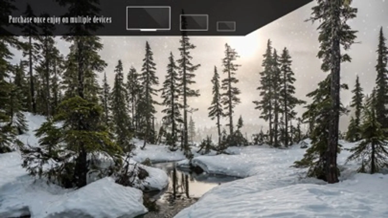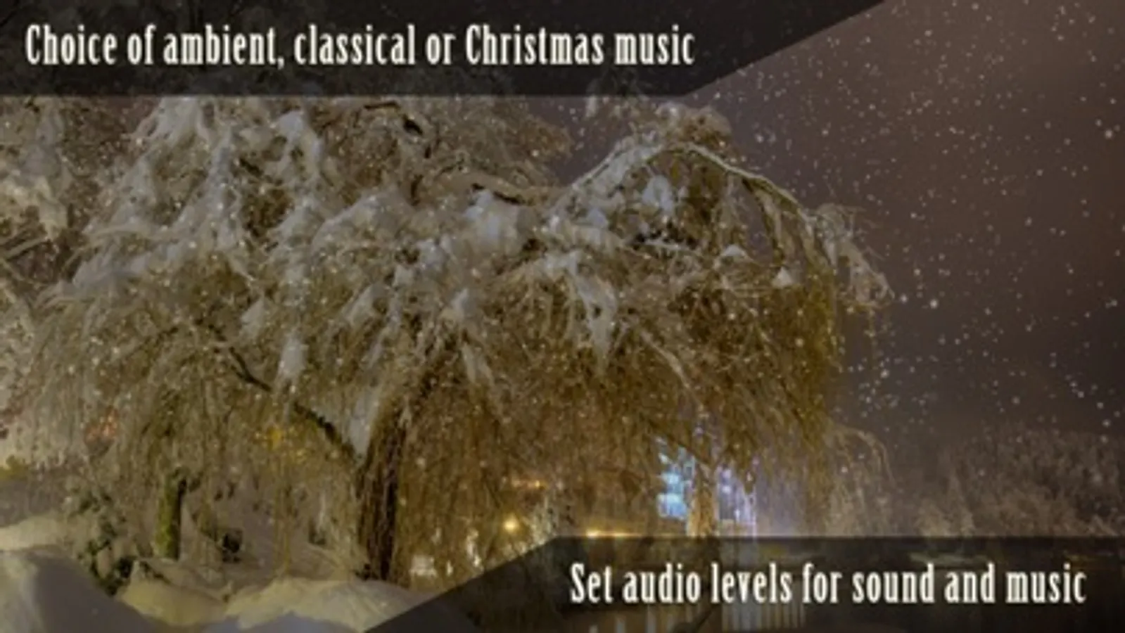 Peaceful Snowfall in full screen HD with gorgeous Winter Scenes coupled with real like falling snow, with a choice of ambient, classical and Christmas music and snowfall SFX.