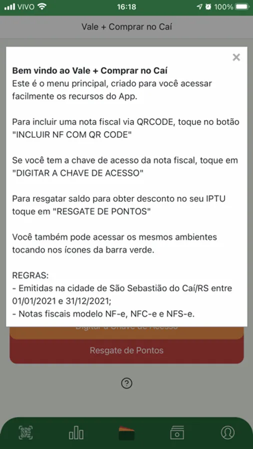 Compre nas empresas da cidade, solicite nota fiscal, abra seu aplicativo e faça a leitura do QRCODE. Pronto! Você já pode acumular valores para resgatar em descontos no IPTU ou indicar saldo para entidades disponíveis no seu aplicativo.