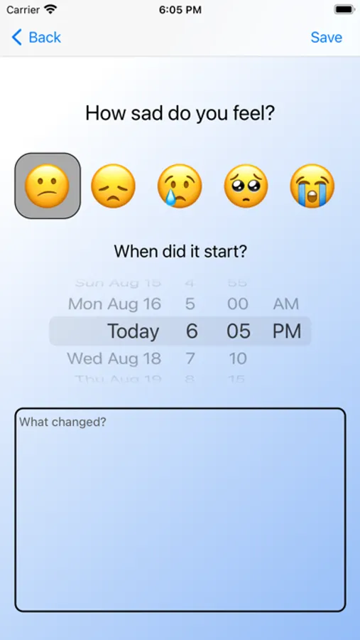 Take a deep breath and ask yourself "Do I feel happy, mad, sad, or afraid?" Your body's sub conscious will almost respond verbally to your conscious on how you feel. Self Awareness is a dedicated app to help you find your emotional state, and to understand what changed to cause that to happen. Nothing too fancy, just your mind and your body.